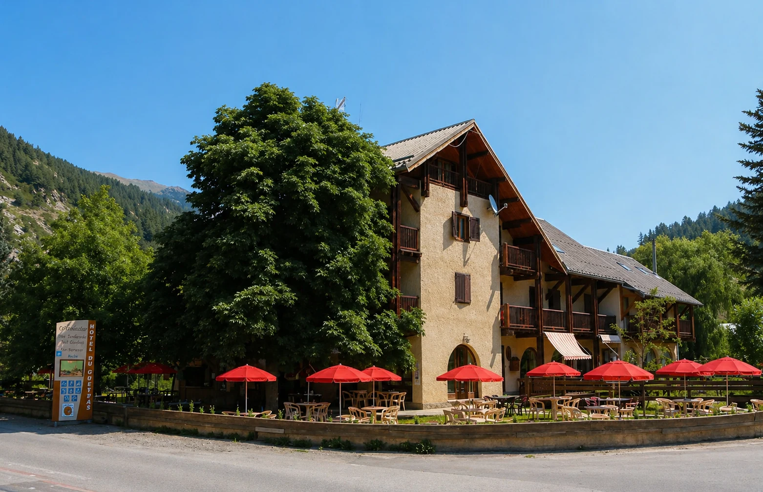 Niché au cœur d'une nature sauvage, notre hôtel-restaurant vous accueille dans un cadre chaleureux et boisé. Profitez de chambres cosy avec balcon et d'une cuisine locale généreuse, point de départ idéal pour vos randonnées et escapades à vélo ou moto.